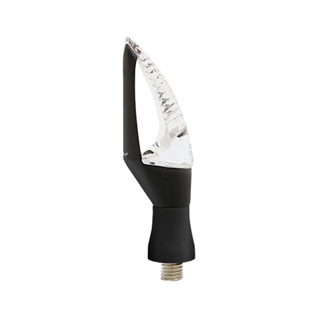 Matte black metal body. Clear lens with amber LEDs. E-approved for front & rear use. Sold each. - Metal body - Clear lens - 12V/1.8W - Body: 24mm deep x 20mm high x 59mm long - Rubber stem 18mm long - M8 x 1.25 x 21.4mm threaded - E-approved for front & rear use