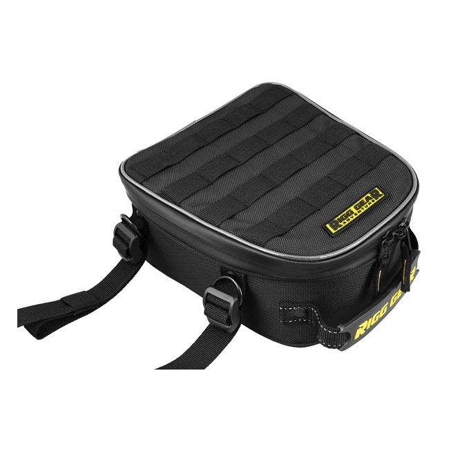 '- Industry leading UltraMax® fabric with maximum UV protection - Heavy duty webbing and buckles for easy and secure mounting - Small size is perfect for most dual sport and enduro motorcycles - Can mount to most racks or seats - Rigid construction with reflective piping - Bag holds its shape even when empty - Water resistant lockable zippers help keep out dust and dirt - Inner self-fastening straps to better secure contents - MOLLE panel on lid allows other items to be strapped down - Rubberized carry handle for easy transport - Main compartment measures: 9.75" (25cm) long x 8.5" (22cm) wide x 4" (10cm) high - Capacity: 5.5 Liters