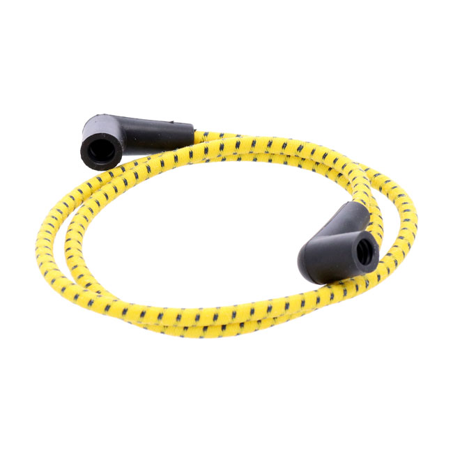 Yellow with black tracer. Universal 'Cut to length required'. 40" (100cm) copper core spark plug wire in 7mm diameter silicone; with 2 pre-attached silicone plug boots and separate coil boots & terminals. Thin enough to look authentic; thick enough to give total reliability. The outside is wrapped in vintage braided multi-color cotton cloth to give it more soul than anything out there. Cut to length required. Complete with coil boots and terminals. Note: Compatible with points ignition only.