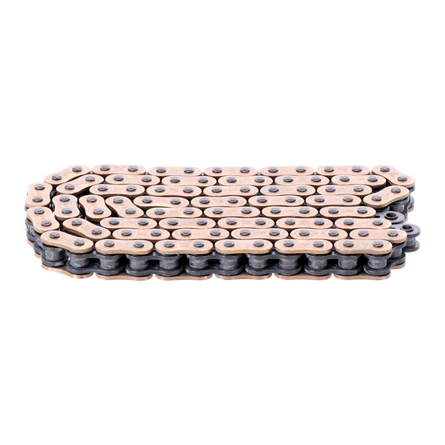 Hyper Enhanced quality AFAM chain with Xs Ring. Featuring new steel alloys for weight optimisation and increased resistance; gold colored plates; best suited to hyper sporting use and long life street use.