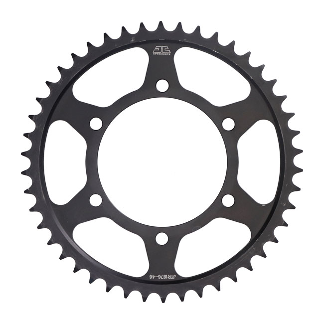 JT Rear Sprocket 1876.46JT Steel rear sprockets are manufactured using Japanese C49 high carbon steel. Designed to minimise weight and maximise strength. Accurately machined to achieve balance and a perfect fit and chain alignment