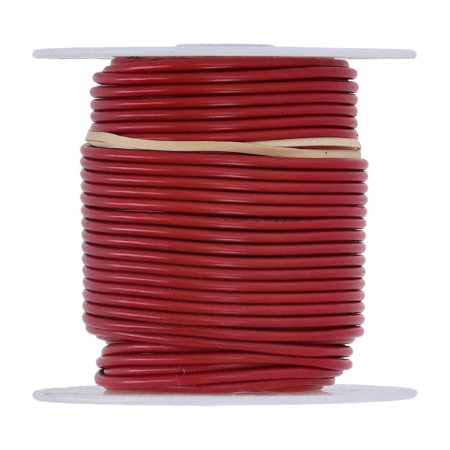 Wire on spool, 14 gauge. 100 ft. RedOn 100 foot (30.48 meters) spool. 14 gauge (2.08mm² or 1.63mm diameter) electrical wire. With Vinyl insulation; will resist abrasion; grease; oil and battery acid. Heat resistant up to 80°C.