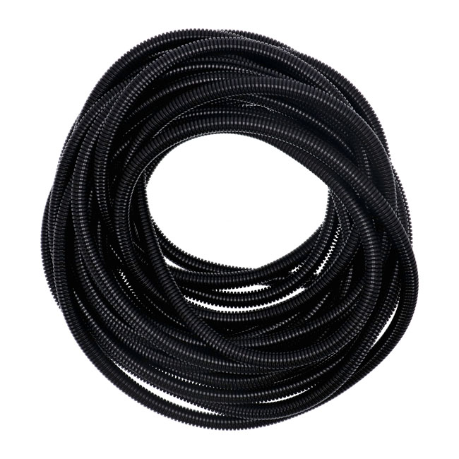 PVC split wiring loom. 50ft, 7/16" I.D. (11.1mm). BlackWith a 'split seam' which allows easy installation; without disconnecting the wiring. Protects against abrasion and heat. Temperature range -15°F (-26°C) and +195°F (91°C).