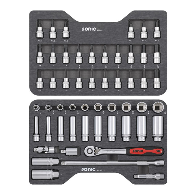 Sonic, combination socket set 3/8'', 53-piece. US/SAE sizes