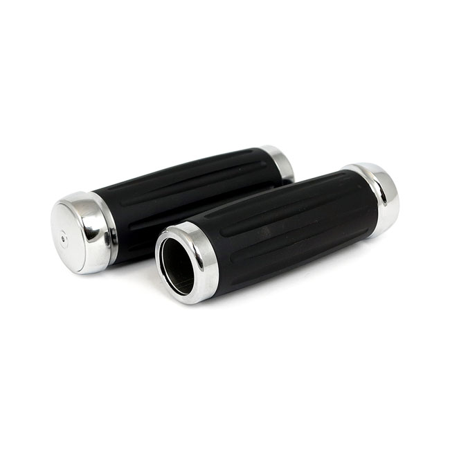 Billet aluminum with slotted black anodized grip surface and chrome plated end caps. Designed for use when using a custom internal throttle grip; where both grips have an internal diameter of 1" (25.4mm).