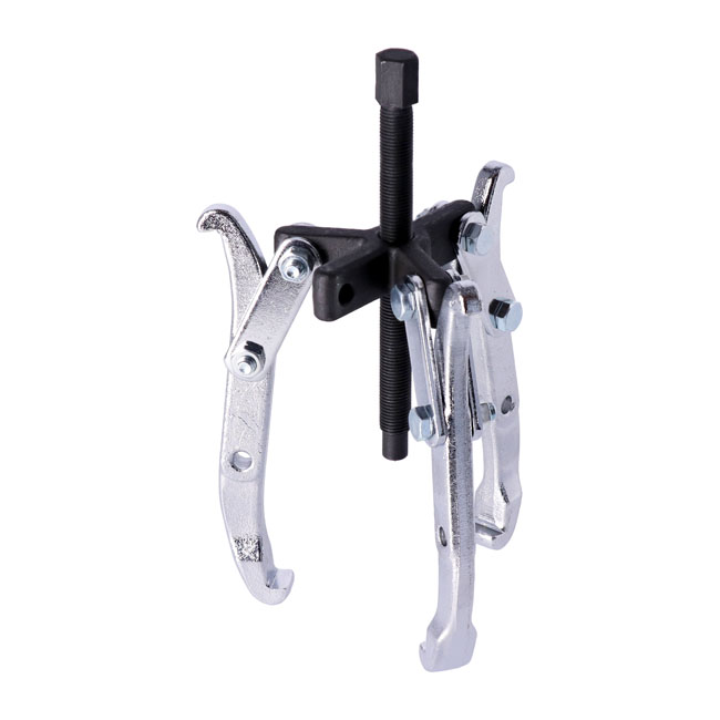 Universal gear puller. Supplied with 3 jaws and can be used as a 2 or 3 jaw puller. - Size: 6" - Spread: 8" - Reach: 3.5" - Max load: 5000kg - Weight: 1640 grams - Height: 126.7 mm - Length: 216.8 mm - Width: 134.2 mm - Number of jaws used: 2 to 3 - Jaws grip tighter as more pressure is applied - Reversible jaws - Material: Drop forged steel alloy - Hardness: 45 Rockwell (Hrc)