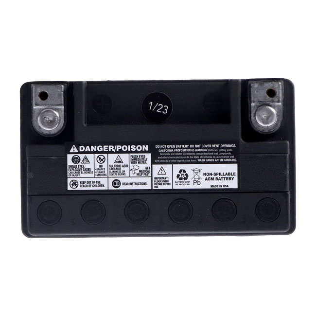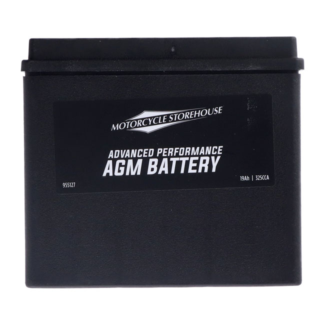 325 CCA (Cold Cranking Amps). The MCS 'Advance Series' AGM batteries; a synonym for a great battery. These high-end Motorcycle Storehouse AGM (Absorbed Glass Mat) 'Advance' batteries are of excellent quality; sealed and maintenance free (just keep them charged). They offer low internal resistance; less heat build-up and a strong starting capacity; much better than compatible flooded acid type batteries. AGM batteries are charged during production but will require a re-charge before installation. Height 155mm x Length 175mm x Width 100mm. OEM replacement reference 65989-90; 65989-90A; 65989-90B. 66000211; 66000211A. Note before installation: Never start the engine before you have fully charged your new battery; to prevent irreversible damage that will ultimately shorten its life span. It is absolutely mandatory to fully charge any new AGM battery before installation. After production AGM batteries are factory activated and will; during storage; slowly discharge. Re-charge at least every 3 months. Recharging sooner may be required in hotter or cooler temperatures. Vehicle electronics; like a clock; alarm etc. will additionally drain an installed battery. AGM batteries will not handle a too deep discharge well. Keep them charged at a minimum of 12.4V for best performance through its life span. Connect the battery to a suitable automatic 'maintenance charger' when not in use for a period of time to retain the optimum charge level.