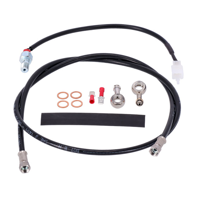 Free Spirits, non-ABS brake line kitClear braided steel. Used in combination with 911365 Free Spirits forward control on 14-15 models equipped without ABS brakes.