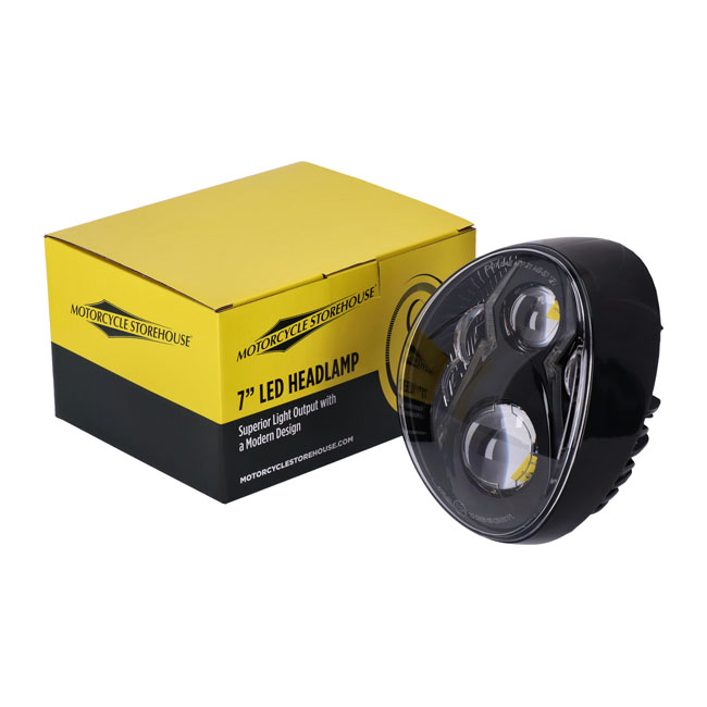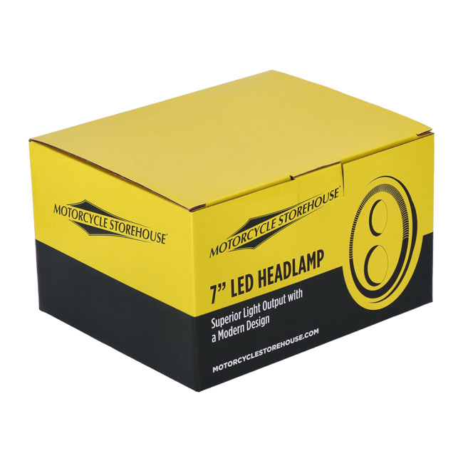 ECE & DOT approved. Black bezel. With a white halo ring/position light. Economical high/low beam LED conversion head lamp unit to replace the stock H4 unit. LEDs are an improvement at all levels when compared to H4 lighting and offer more effective and whiter light at 6000K; much better reliability and less amperage draw. - White halo-ring/position light - Unit comes complete with wiring with a 3-prong plug that is identical to a standard H4 light bulb; allowing a plug & play conversion - Compatible with left side (UK) & right side (EU) riding - 182mm (7.16") diameter - 96mm (3.78") deep - 6000K color temperature - Theoretical power at high beam 72W - 12-Volt DC. - Passing beam 3 LEDs 23W - Driving beam 1 LED 40W - Halo ring/position light 40 LEDs 2.4W - Approval E24*50R01/00*0586*00 NOTE: Not available for sale in Germany