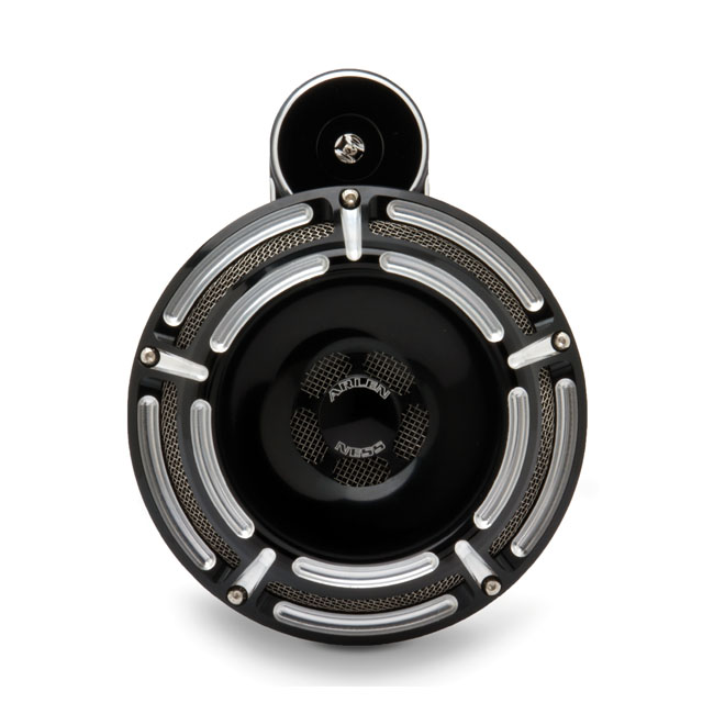 Black anodized Contrast Machined finish. CNC machined billet 6061-T6 aluminum with 110 dB; which is louder than stock. Diameter 150mm.. Note: Arlen Ness horns can be style matched to other Arlen Ness components like air cleaners; foot pegs; grips; gas caps; head lamps; etc.