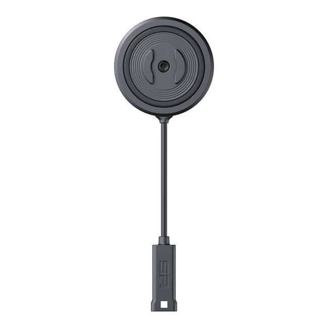 Compatible with the SPC+ phone case only. This is an optional vibration damping module with a built-in weatherproof inductive charger. Used between the smartphone and all SP Connect™ mounts with standard damping head. Compatible with the SPC+ phone case only. This is a optional vibration damping module with a built-in weatherproof inductive charger. Used between the smartphone and all SP Connect™ mounts with standard damping head. This module additionally reduces engine vibrations through special developed elastomer damper inlays; that dampen in all directions. - Weatherproof inductive charging - Protects the vibration-sensitive components like mechanical image stabilizers of the camera - Stops up to 60% of vibrations - Weight 104 grams - CNC machined aircraft grade aluminum. Includes: - 1 × Charging Anti Vibration Module SPC+ - 1 × screw (M5x16mm) - 1 × screw (M5x21mm) - 1 × Cable USB-A/USB-C (QC 3.0)