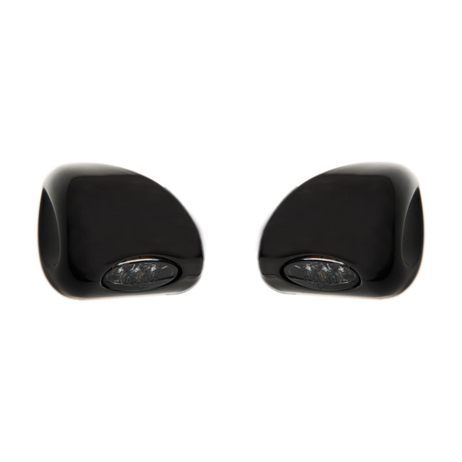 Black anodized. With DLR (Daytime Running Lamps). CNC machined from billet aluminum. Great solution to replace the over dimensioned stock items. With SMD LED technology allowing super small physics but very bright turn signal lighting. Comes with smoke lenses that are E-marked. Bolt-on to stock mounts. Fits Road Glide models with the classic 15-24 Sharknose fairing.