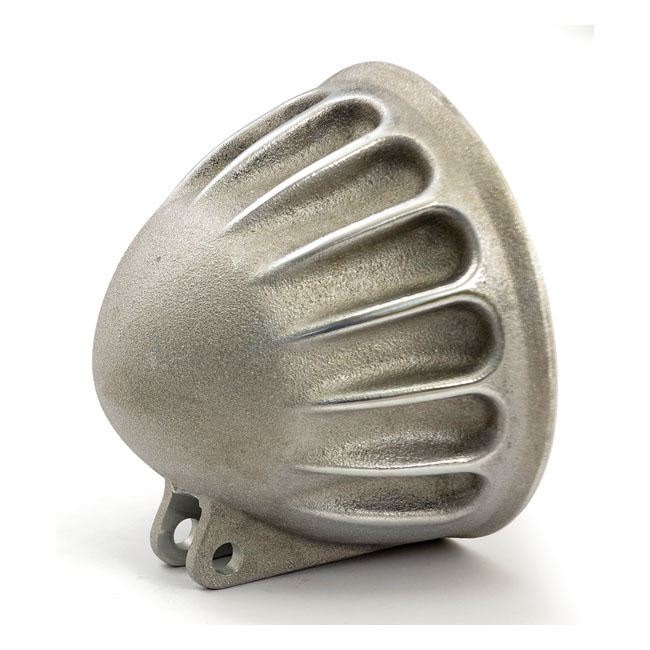- Raw cast aluminum with semi-polished ribs. - Ribbed cast aluminum in a retro design to surpass any regular old-time look. Note: 5-3/4" headlamp unit; trim ring and custom bottom mount block must be re-used or purchased separately. Note: Not compatible with LED units.