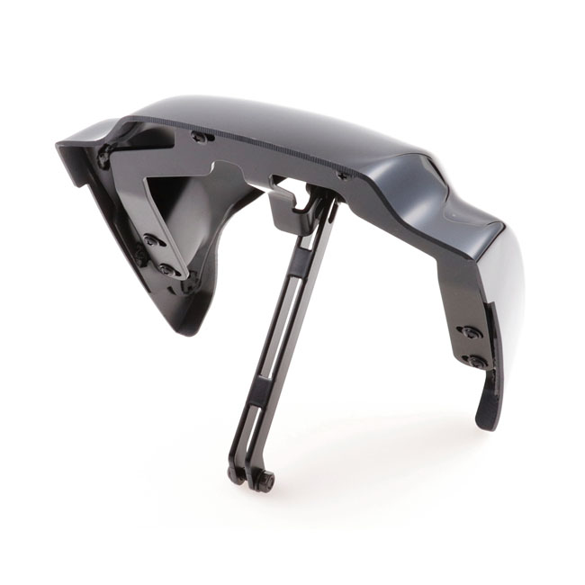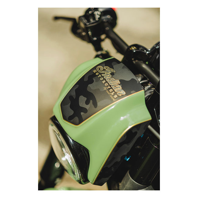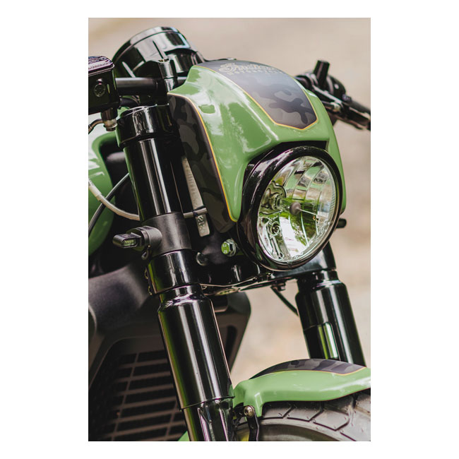 Unpainted gloss black finish. Used in combination with the OEM Scout Bobber LED headlamp which remains; like OEM; adjustable. The headlamp mask will move with the headlamp. Kit comes with a black powder coated CNC laser-cut steel bracket and a high quality ABS plastic mask. Provides a more aggressive look and optically makes the bike narrower on the front side. Mount holes are pre-drilled and installation is bolt-on to OEM mounting points and compatible with OEM cables and wiring. No modifications required for installation. This comes with approval. Note: Check your local MCS dealer or the MCS sales department for exact type of approval and validity on bike model and years on the test report.
