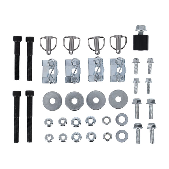 Mounting hardware that allows the installation of Dresser style hard bags or leather bags. Quality steel with black powder coated finish. Note: Bagger Tails may interfere with some larger seats and turn signals may need relocating. Note: Exhaust must be lower than rear axle.