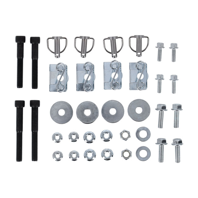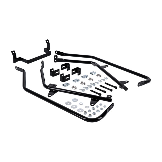 Mounting hardware that allows the installation of Dresser style hard bags or leather bags. Quality steel with black powder coated finish. Note: Bagger Tails may interfere with some larger seats and turn signals may need relocating. Note: Exhaust must be lower than rear axle.