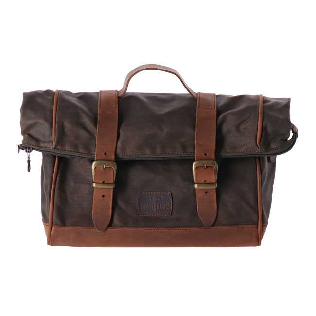 '- Old Chopper - Approx. dimensions: 42/34 x 24 x 12cm - Capacity: 9.5 liter - With roll-up expandable top for adding extra space; only when required. Universal single sided 'Heritage' saddlebag offering click-on installation ease. A triangular mounting bracket; that is supplied; is mounted to the rear side of the bag. This way the bag mounts to a; separately available; universal or model specific 'Click & Lock' LongRide saddlebag bracket. Bags are made from waxed cotton and finished with ranger leather panels; leather straps and internal reinforcement plates to help maintain its shape. The inside is fitted with an internal waterproof polyester lining. An extra side-pocket is present for quick accessible small parts. Dimensions and capacities are approximate and for reference only. Note: Designed to be used with; separately available; model specific or universal (986406 /986407) 'Click & Lock' LongRide saddlebag bracket. Mote: See 970944 for the optional waterproof inner bag liner.