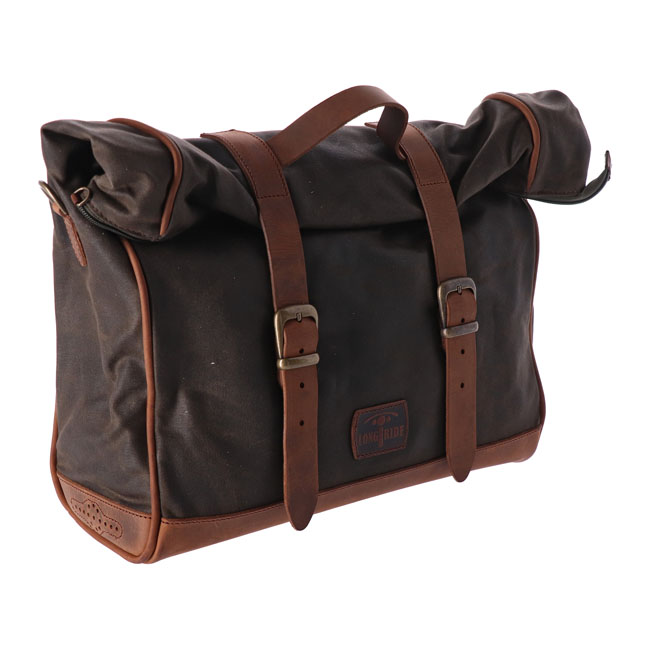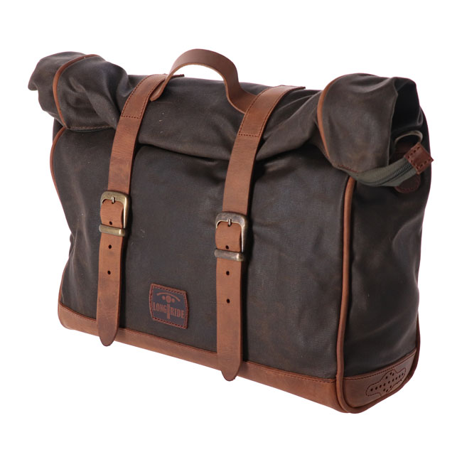 '- Old Chopper - Approx. dimensions: 50/40 x 32 x 14cm - Capacity 18 liter - With roll-up expandable top for adding extra space; only when required. Universal single sided 'Heritage' saddlebag offering click-on installation ease. A triangular mounting bracket; that is supplied; is mounted to the rear side of the bag. This way the bag mounts to a; separately available; universal or model specific 'Click & Lock' LongRide saddlebag bracket. Bags are made from waxed cotton and finished with ranger leather panels; leather straps and internal reinforcement plates to help maintain its shape. The inside is fitted with an internal waterproof polyester lining. An extra side-pocket is present for quick accessible small parts. Dimensions and capacities are approximate and for reference only. Note: Designed to be used with; separately available; model specific or universal (986406 /986407) 'Click & Lock' LongRide saddlebag bracket. Note: See 970946 for the optional waterproof inner bag liner.