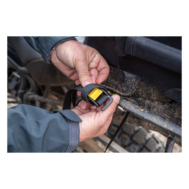 Rigg-Straps™ is a patented cam-hook design made from aircraft grade aluminum. A strap system used to strap your luggage to your bike; offering a variation of tie-down options. Features: - Heavy duty webbing 5ft. (60"/152cm) max length - Loop ends for additional connection points - Sold in pairs - Pull force not to exceed 100 lbs (45kg)