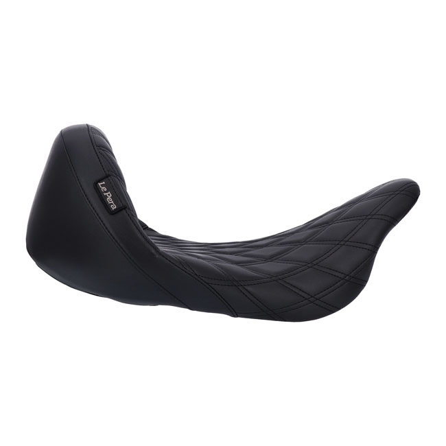 15" wide rider seating area. Double diamond stitch pattern. The Monterey offers excellent touring comfort on longer stretches with the wide and deeply contoured rider seat for great lower back support; all wrapped in true classic styling. Lower than stock height seats to provide better foot placement. Built to last with LePera's 'Marathon' high density one-piece poured foam on a black powder coated 16 gauge steel base plate; which is carpeted on the bottom and edged with a metal reinforced vinyl protectant. The upholstery is double stitched premium Naugahyde vinyl. Note: A matching 14" wide Sanora passenger seat is optionally available as 974994