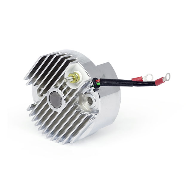 12-Volt electronic voltage regulator. Replaces the OEM; separately mounted; early mechanical and late electronic regulator. Mounts directly to the OEM generator where it is installed in place of the stock end cover. Includes an armature support needle bearing.