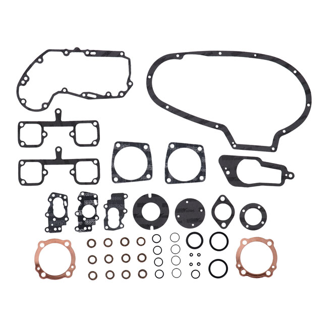 No oil seals included. 3-3/16" bore. With 0.5mm (.020") copper cylinder head gaskets and 0.75mm (.030") cylinder base gaskets. Includes 1.5mm (.060") thick AFM (Aluminum Foamet Material) primary cover gasket. Otherwise complete with all gaskets; O-rings and primary gaskets required for a complete engine overhaul.Complete as shown. OEM replacement reference 17024-71 gasket kit (which has various additional parts to cover all 71-85 XL1000 models).