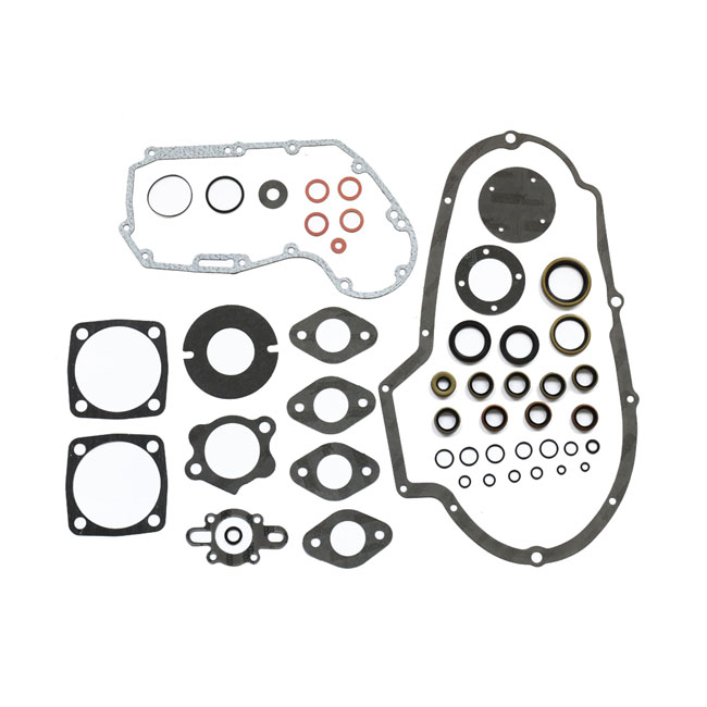 With 0.3mm (.012") fiber reinforced paper base gaskets. Includes 0.75mm (.030") thick reinforced fiber primary gasket with a silicone bead. Complete with all gaskets; O-rings; seals and primary gaskets required for a complete engine overhaul. OEM replacement reference 17026-83. Note: Does not include cylinder head gaskets since XR1000 models were never factory equipped with head gaskets. Originally the steel (iron) cylinders & high performance aluminum heads are bolted together without the use of any sort of head gasket. As such head gaskets are not offered by Athena. The use of any sort of head to cylinder sealing solution would be non-stock.