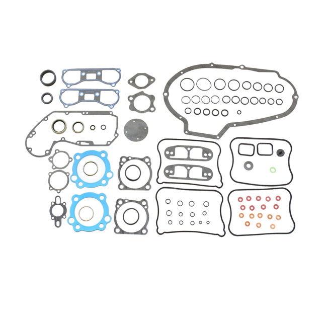 3.5" bore. With 1.5mm (.060") Blue PTFE coated paper cylinder head gaskets and 0.5mm (.020") reinforced fiber base gaskets. Includes primary gasket 0.75mm (.030") thick fiber reinforced paper. Complete with all gaskets; O-rings; seals and primary gaskets required for a complete engine overhaul. OEM replacement reference OEM replacement reference 17026-88 and 17026-86A gasket kit (which had additional parts to cover all 883/1200 models).