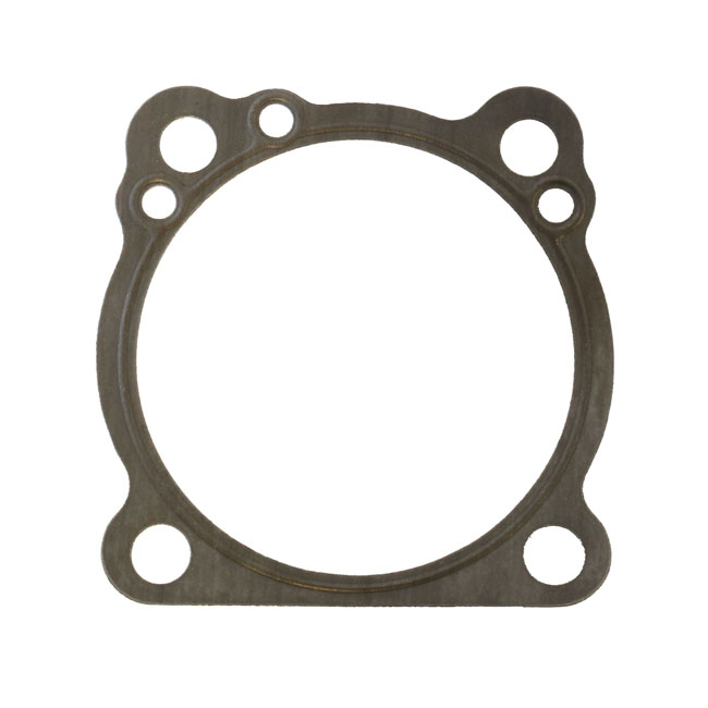 3" to 3-1/2" bore. Front/rear. Type 'B'. 0.4mm (.015") RCS (Rubber Coated Steel). Gasket with an embossed steel core with a .001" thick coating of heat resistant nitrile rubber on both sides. OEM replacement reference 16774-86C; 16774-86D; 16789-04. Note: Type 'A' and 'B' Evolution base gaskets explained. There are 2 types of cylinder base gaskets for Evolution models available. For convenience sake we call them 'type A' (early style) and 'type B' (late style). - Type A' gasket: Was introduced on the 1984 Evolution Big Twin models; and can be used on all of the 84-99 1340cc Evo models and will follow the contours of the cylinder base perfectly. They will fit 86-22 Evo XL; but stick out at the cylinder base. This can be a problem with silicone beaded base gaskets.- Type B' gasket: Was introduced on Evolution XL Sportster models in 1986; and will fit all Evo XL models; but also all 84-99 Evo 1340cc models although the Big Twin cylinder base is a bit larger than the gasket. The 'type B' is the only gasket type that 'The Factory' supplied from 1986 onwards for both Evo Big Twin and Evo XL Sportster models.Both type 'A' and type 'B' have identical inner bore diameter; oil hole and stud hole locations. Gaskets for front & rear cylinder are identical. Only difference between the 'A' & 'B' gaskets is the outside perimeter.