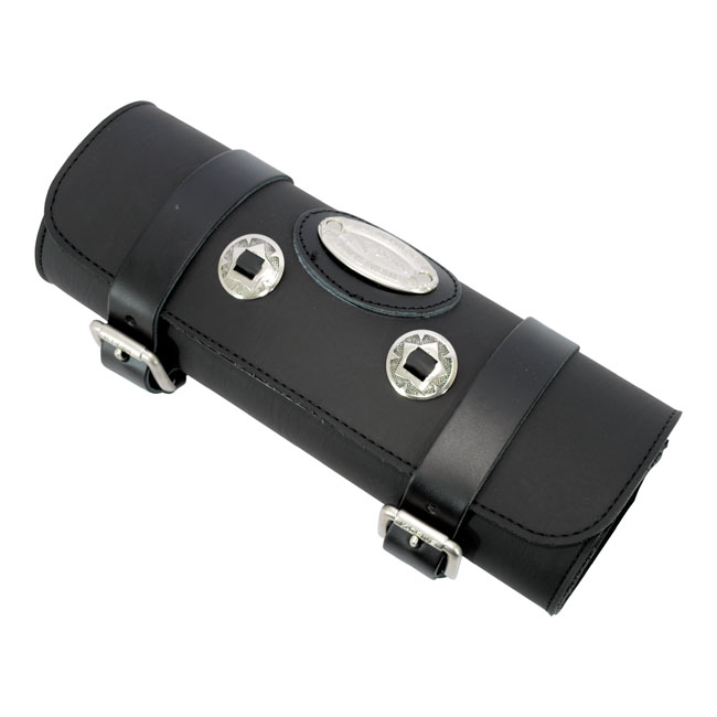 Longride, genuine leather tool roll 2.8L. Smooth blackUniversal genuine leather tool roll; installs with straps to forks; frame etc Dimensions of this version: 33cm wide x 10;5cm diameter. 2.8 Liter volume