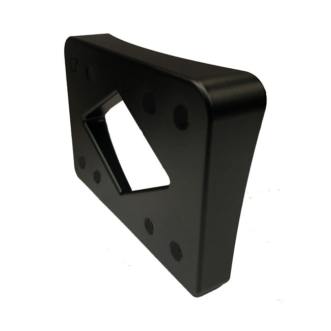 Small 11.5° angle. Matte black powder coated CNC machined billet aluminum license plate mounting block. Designed to give either the license plate frame or license plate an mount angle downwards or upwards. This 'small' version gives a small angle for use with longer fenders. Obviously; when rotating the license plate mount block 180° you'll have either a more downwards; for improved rear visibility; or a more upwards angle for a more 'lay down' style license plate. Fits over the hole from the original up to 2018 lay down H-D taillight but is also perfect for many custom or non H-D applications.