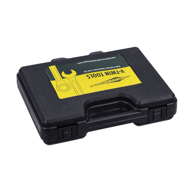 Used to install and remove valve springs. Upgraded modern equivalent of the classic 96600-36 H-D style valve spring compressor. Comes with various adapters to work with valve springs as used on 36-04 OHV Big Twin; 57-03 XL but also with the conical Beehive style springs on 05-17 Twin Cam; 04-22 XL and 03-10 Buell XB models. Also compatible with the M8 18100043 and the upgraded retrofittable 18100140 valve springs used on 17-up M8 models. Note: Will not fit Flathead models.