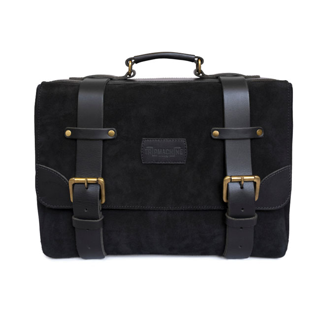 Probably the toughest bag that you'll ever own. Use it and forget it. Made from special dust and water repellant genuine leather suede for any situation. Handmade with the build quality; and charm; of the good old days. Designed for easy on/off the motorcycle in a matter of seconds. Carry it with you when you are not riding by slipping it over your shoulder with the included shoulder strap. Contains a laptop compartment and 3 small pockets to carry your essentials. 100% leather; no cloth; rubber or plastics. Approximate dimensions: 15" (38cm) long x 11" (28cm) high x 5" (12.7cm) wide
