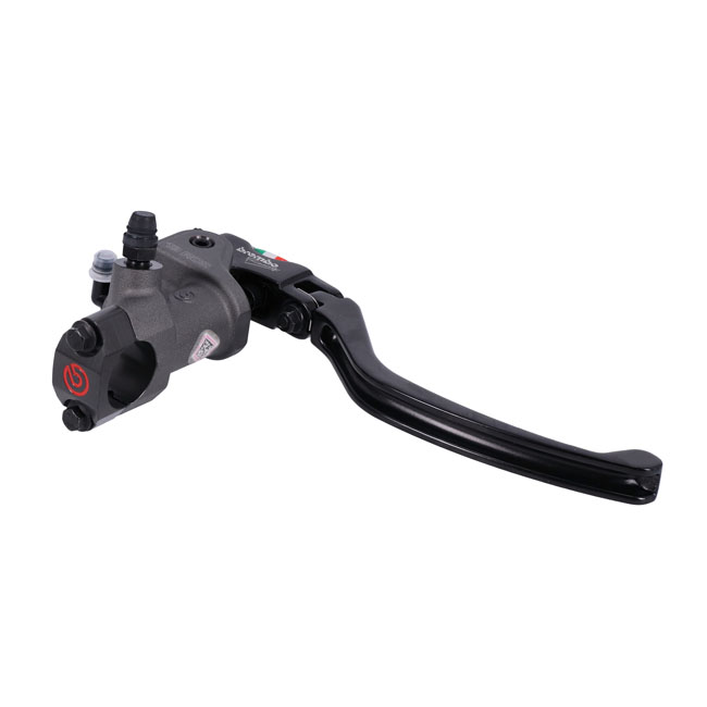 For Dual Disc models. Brake handlebar master cylinder with black lever with grey body. M10 x 1.0 threaded with double banjo bolt included. For 1" diameter handlebars. Brake light switch included. Forged aluminum alloy with CNC machining. Comes with a hard anodized gray body and black lever. By turning a roller cam the lever pivot point can be set at 18 or 20mm. The piston; seals and the pushrod are identical to the ones as used in MotoGP and World Superbike. The patented lever hinge system allows movement in case of a crash only; helping to prevent damage beyond the lever. Note: When required Micro brake light switch must be ordered separately as 999415.