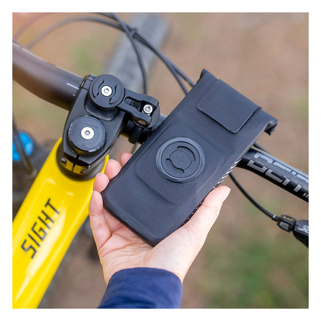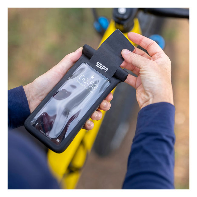 - Black - XL size - max. phone size approx. 170 x 85 mm - Compatible with all SPC+ mounts. For use with the earlier SPC mounts an adapter will be required - With the SP Connect™ UNIVERSAL PHONE CASE; you can use just about any smartphone on any SP Connect™ mount to secure your phone to bicycles; cars; motorbikes; golf carts; etc. with its patented twist-lock mechanism to install. Simply push the smartphone into the case and roll up the opening and close the tab. This way your phone remains protected from rain; sweat; mud and dust; still offering the same touchscreen usability. The fleece-lined insert and the pre-glued EVA frame allow you to find the perfect position for your smartphone - Integrated mounting mechanism - Protection against rain; sweat; mud and dust - Touchscreen operability remains possible - Scratch-free fleece insert - Reflective security printing. Includes: - 1 × Universal Phone Case (XL) - 1 × Adapter SPC+ - 1 × Tool SPC+ Note: Wireless Charging can be affected when using the Universal Phone Case.