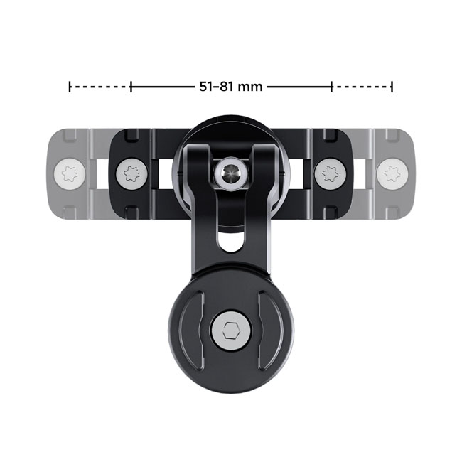 Allows you to install your phone; with SP+ Connect phone case; to the mounting holes of handlebar master cylinder lids that have a 51mm to 81mm mounting hole distance. The Brake Mount Large can be rotated 360° and fixed in a suitable position. The flexible arm can be adjusted up to a maximum of 72° and down to a maximum of 60°. - For maxi scooters; scooters; mopeds and motorcycles - Mounts to the lid of most brake fluid reservoir (51–81 mm hole to hole distance) - Wide range of adjustment possibilities - Mobile phone can be fixed in portrait or landscape format. Includes: - 1 x Brake Mount L - 2 x Screw Torx M 4x16 - 2 x Screw Torx M 4x18