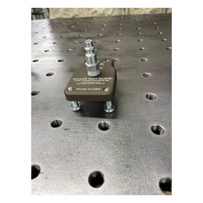 This is an intake test plate; complete with air fitting. Used to make sure you don't have intake leak issues. The test plate bolts to the intake manifold; make sure to collapse the intake pushrods; and use a vacuum hand pump to see if the system holds vacuum. If the system doesn't hold 10 inHG for 10 seconds or longer; you have a leak that you need to deal with. You can then switch over to positive air pressure to more easily find the leak. USA made.