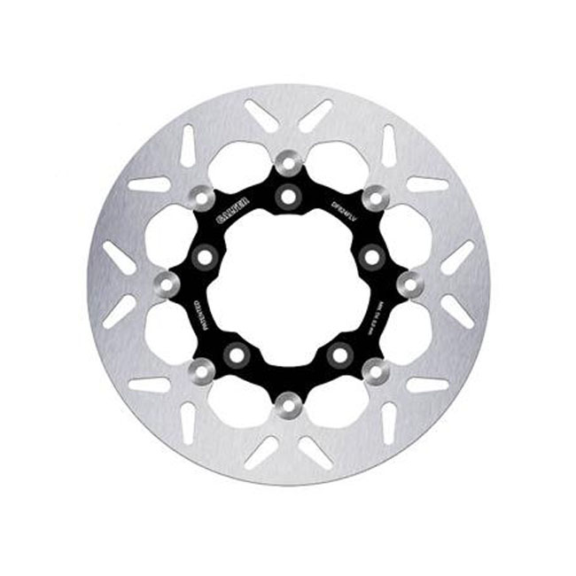 292mm (11.5") OD. 5.6mm thick; 101mm ID; 10.2mm (3/8") counterbored mounting holes; 5" BCD (Bolt Circle Diameter). Mount style E. OEM replacement reference 44343-01. Note: All Galfer brake rotor designs are symmetrical. This allows left or right side installation without optical issues. Galfer round discs are the most classic in terms of their appearance; they are the perfect replacement to maintain the original aesthetics; and they are characterized by excellent corrosion resistance. They are made of high-carbon stainless steel with core stainless steel (AISI 420).