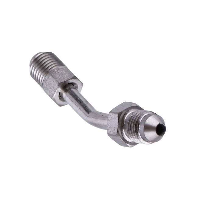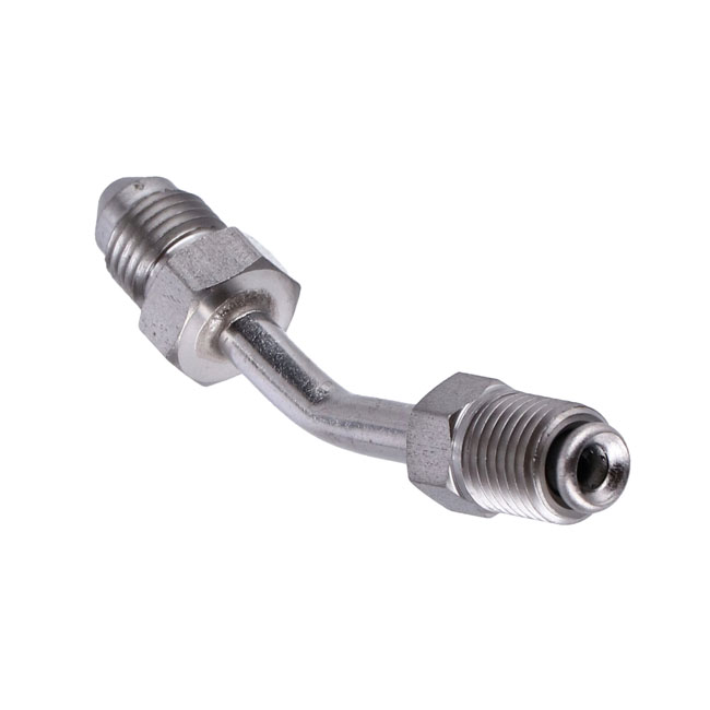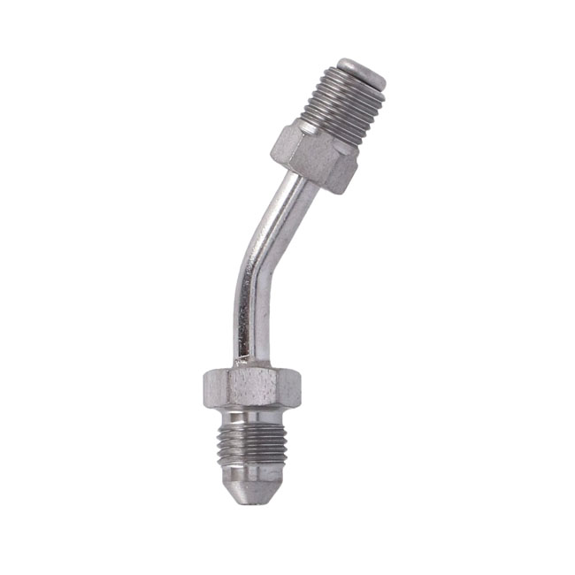 Installs into transmission end cover of the OEM late-model Touring. Allows the use of regular brake lines with AN-3 connection to be used as hydraulic clutch line. High polished stainless steel.