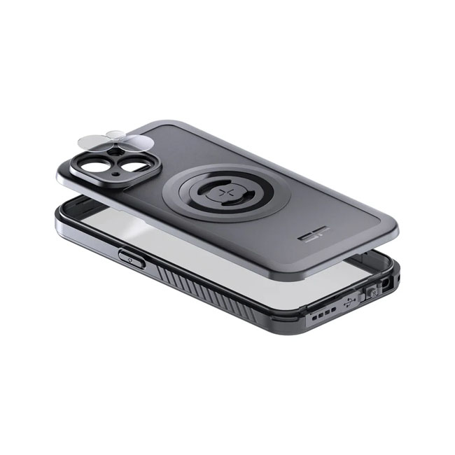 When the tough get going; it's time for Phone Case Extreme. 2-piece design to provide ultimate full 360° protection so your phone can keep up with even your wildest adventures. IP68 waterproof. - Quick & secure mounting - Fast magnetic attachment - Wireless charging - MagSafe® compatible - Two-piece protection for 100% enclosure of your phone - Military Drop-Test certified (MIL-STD 810) - Waterproof (IP68) - Mud and dust resistant - Durable camera lens protection - Full touch screen functionality - Can be used in combination with any SP Connect™ mounting accessories. - The simple effective 90 degree 'Twist to Lock' mount that allows an excellent connection in a second. Includes: - 1 x Phone Case Xtreme - 1 x Lanyard - 1 x SPC+ Adapter - 1 x Tool SPC+. Note: See SP Connect™ accessories for all mounting options.