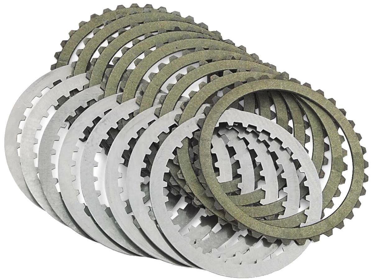 Extra-Plate Clutch Kit Kit consists of 9 carbon fiber friction plates and 8 steel drive plates (double steel drive plate is not used). Adds 12% more surface area to clutch pack.