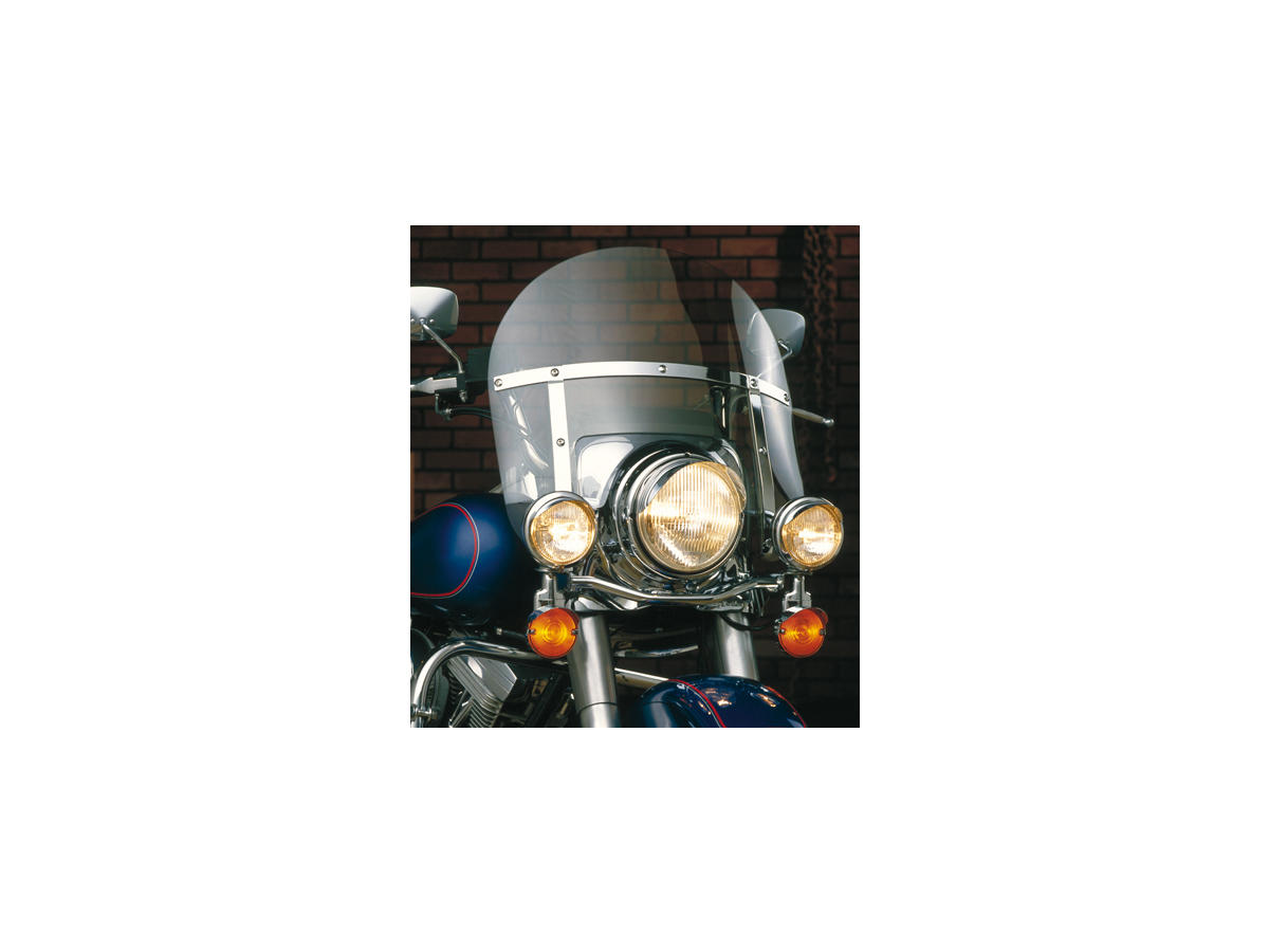 Chopped Heavy Duty Windshield without Mounting Kit Height: 18,5", Width: 21,5", Early FLH-style notched Headlight Cutout to Top of Screen: 14.25-17.25" Clear- Height: 18,5"