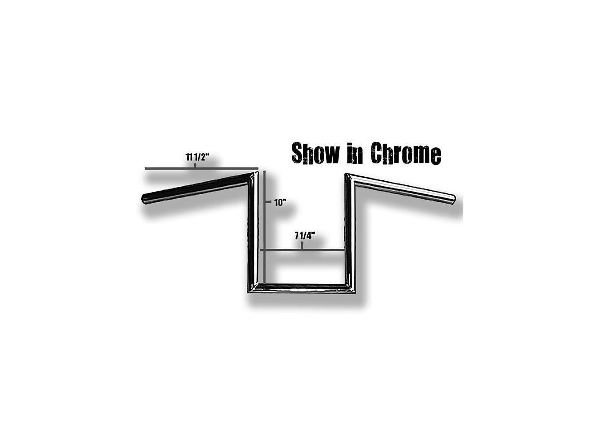 60s Wide Style 10 Handlebar Dimpled Black Powder Coated 1" Throttle Cables- Bar ø: 1"- Clamp ø: 1"- Pullback: 114 mm