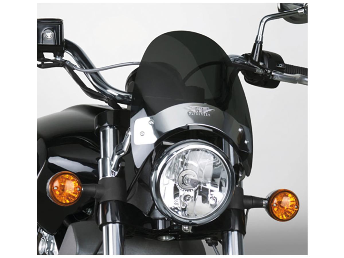 Flyscreen Windshield Kit Height: 8,5", Width: 9,25", Chrome Brackets 52-56mm Dark Smoke- Height: 8,5"