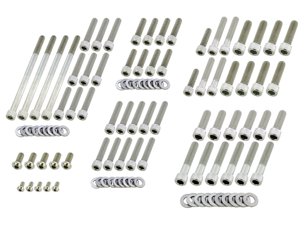 Complete Engine Screw Kit Screws for Dyna, Softail Primary-, Cam-, Inspection-, Derby-, Timer-, Tranny Side Cover, Rockerboxes, Lifterbase Stainless Steel