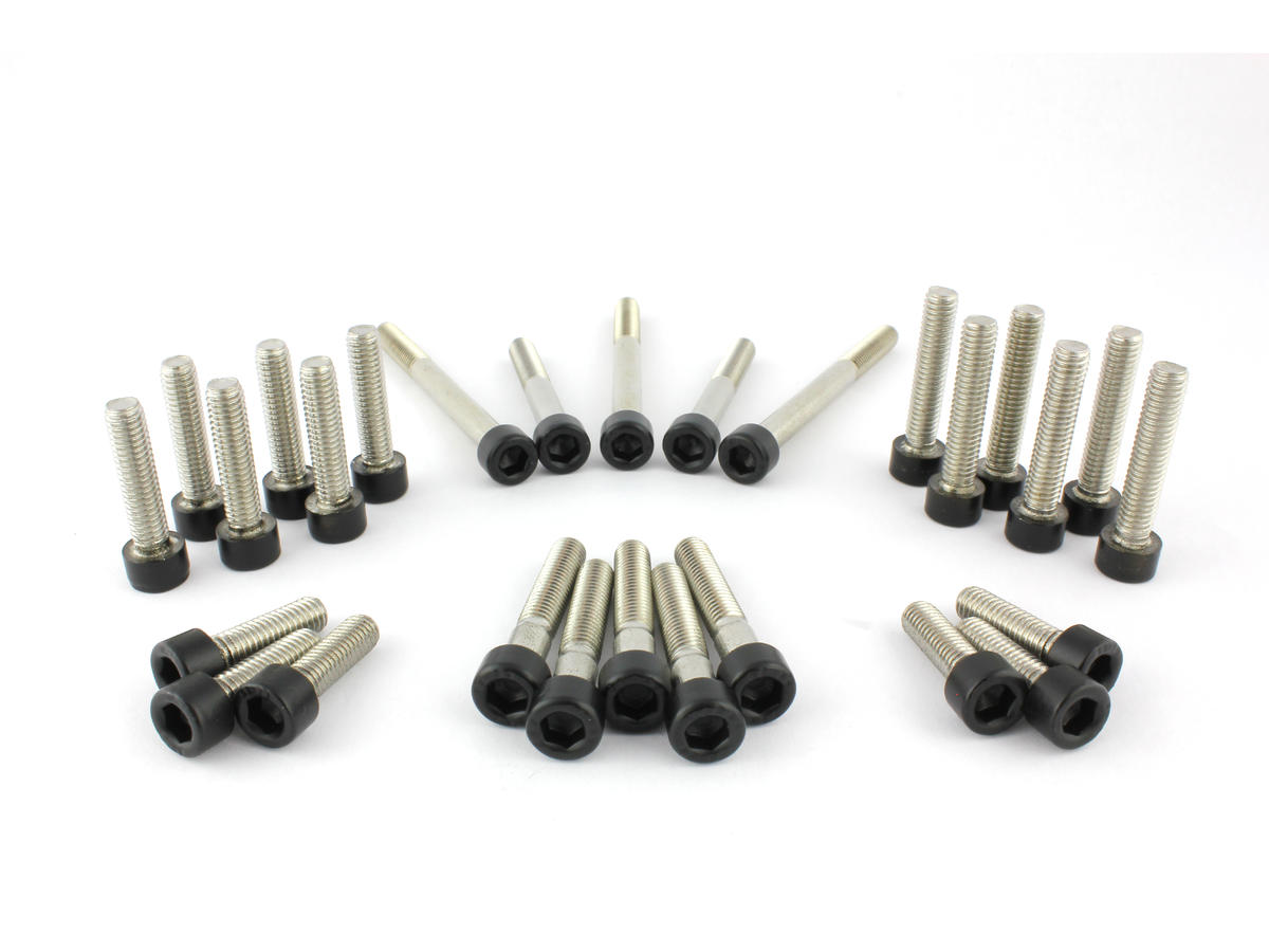 Complete Engine Screw Kit Screws for Indian Scout Primary-, Clutch-, Sprocket-, Thermostat-, Ignition Cover, Engine Cover leftside, Cover Stator Badge Satin Black Powder Coated