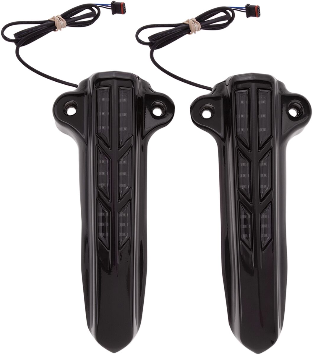 Forkini Lower Fork Leg Covers- Replace the OEM reflectors; add visibility so you can be seen from the side of your bike.- Amber LED lights.- Plug-and-play.- Simple bolt-on design