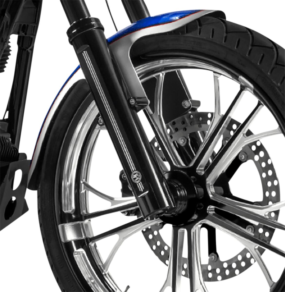 FXLR applications will require the use of a '06-'17 FXD front fender. '06-'17 FXD models will require the use of oil locks OEM #45500421 (sold separately). '06-'17 FXD models will require PM 4-piston direct bolt on calipers designed for 11.8 rotors (sold separately)."