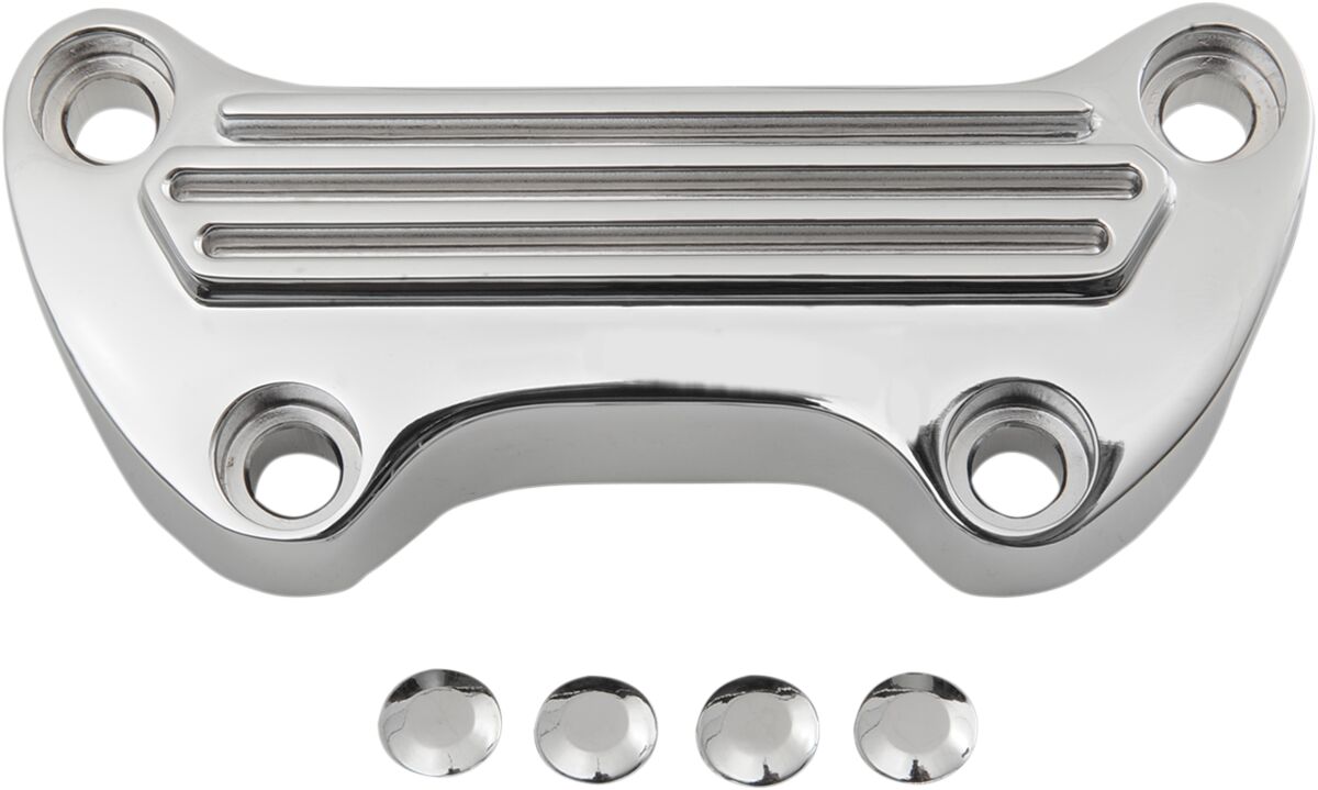 Handlebar Clamp- Die-cast clamp for most '74-'17 models with 3-1/2 on-center risers and offset mounting holes.