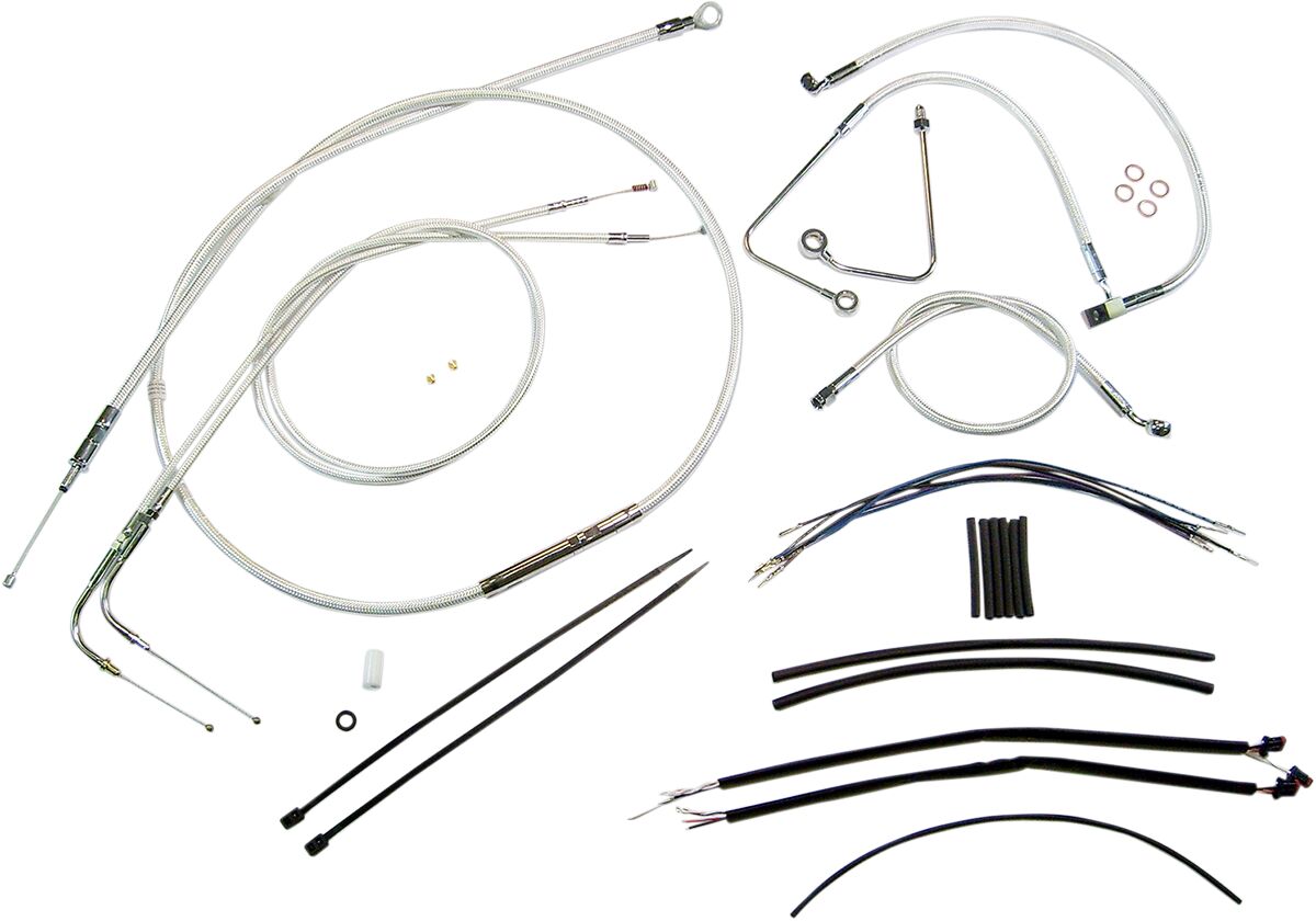 - Kit includes throttle and idle cables of throttle-by-wire extensions, clutch cable or hydraulic clutch line, brake lines, copper crush washers, hardware, and any necessary switch wiring of turn signal extension.